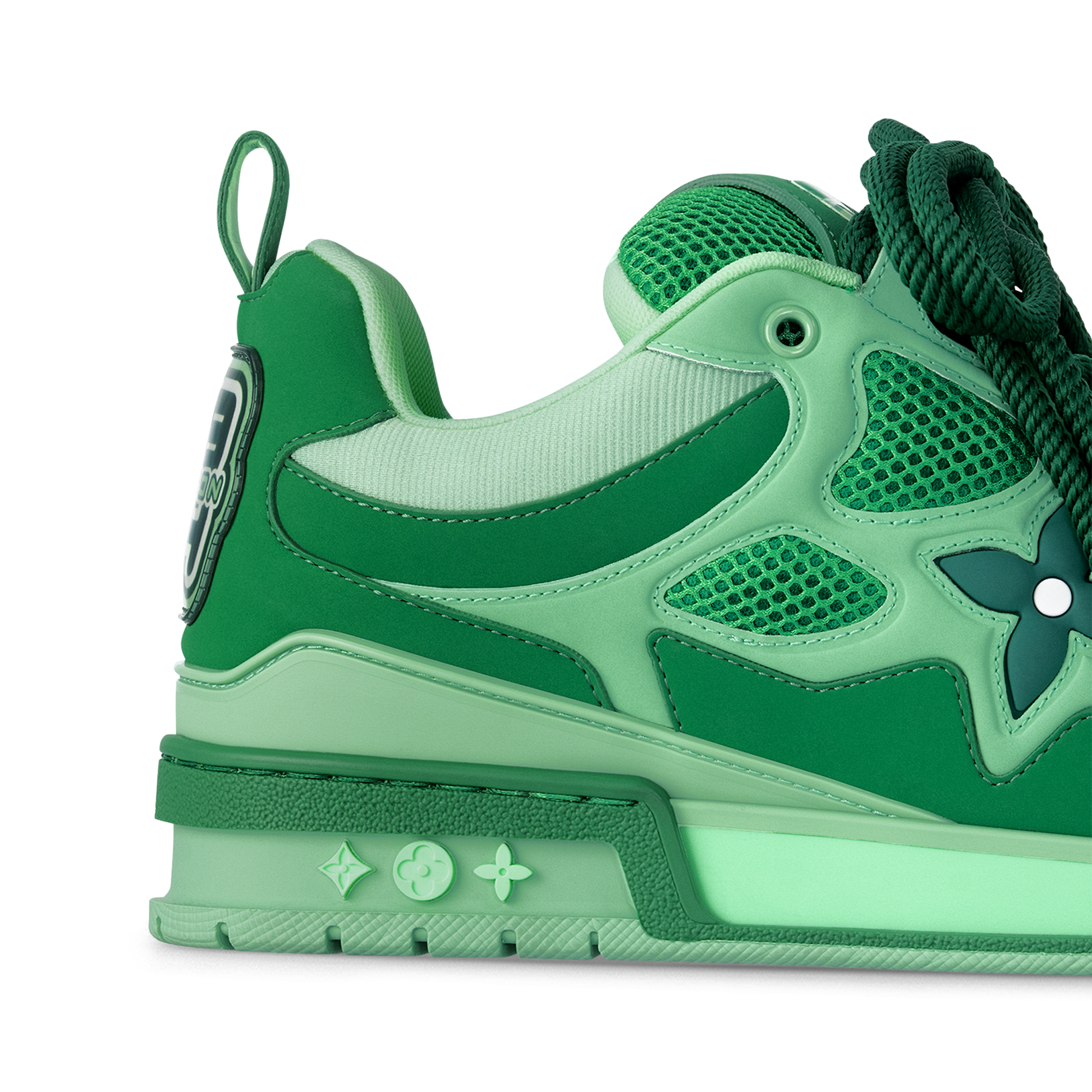 The LV Skate Sneaker reimagines classic skate culture with Louis Vuitton’s signature luxury touch. Crafted from a mix of technical mesh and premium calf leather, it brings a bold, oversized silhouette inspired by 90s skate shoes. The design is elevated with reflective accents, padded details, and iconic LV branding that blends streetwear energy with refined craftsmanship.