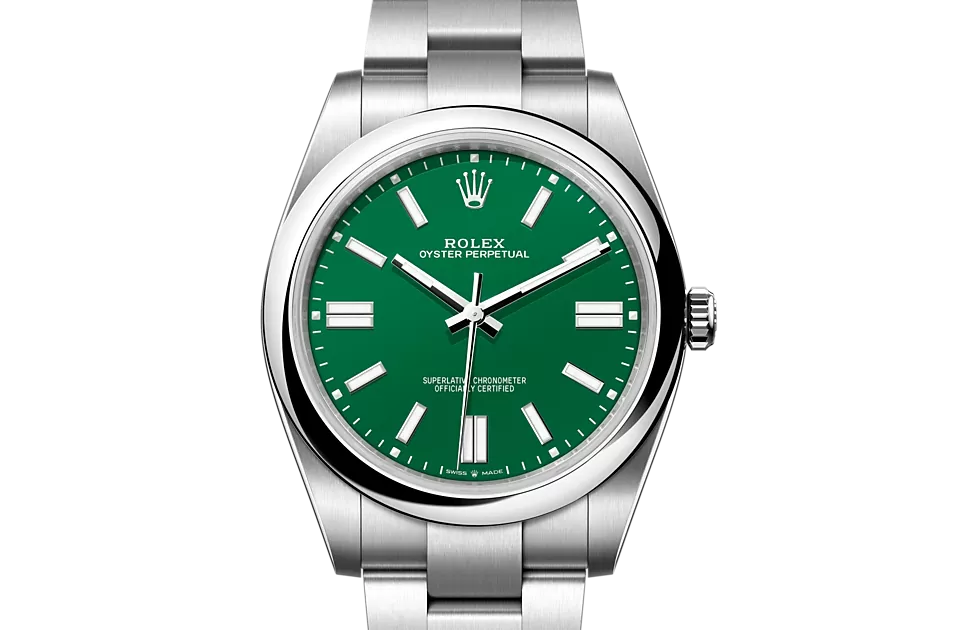 This bold, vivid tone is thanks to exceptional in-house expertise at Rolex, where craftsmanship rhymes with high technology. The colors created for the Oyster Perpetual range start life as a lacquer, which must be meticulously applied in a controlled-atmosphere environment to avoid dust and other contamination. The brass plate of the dial base receives layer upon layer of lacquer, six in all, to form a regular, uniform surface. The last step is varnishing and polishing to bring out the full brilliance and depth of color. The various inscriptions are then pad printed, and the hour markers and crown riveted by hand. The dial, gleaming in its perfection, is all set to take its place on top of the movement at the watch assembly phase.